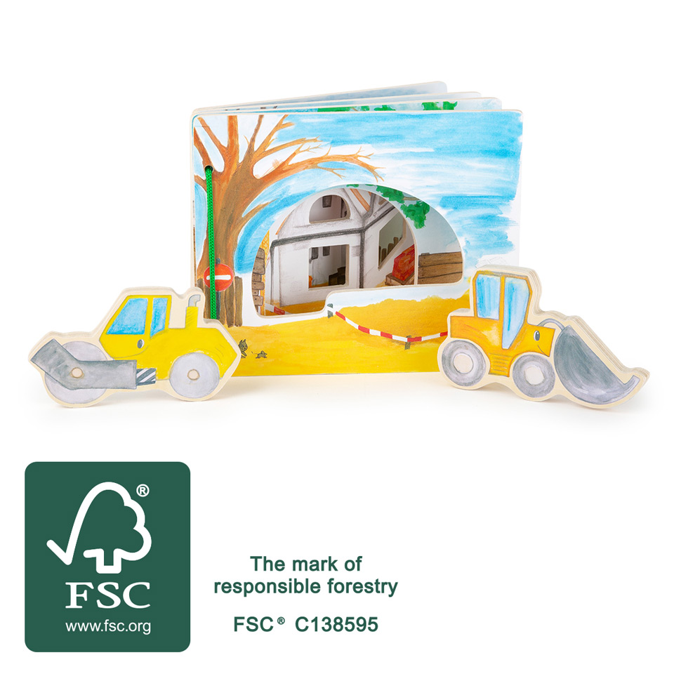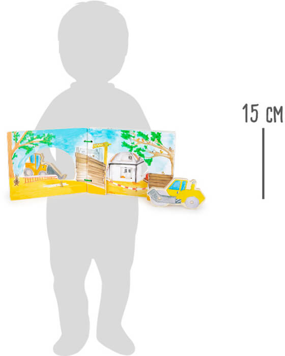 Il y a tellement de choses à découvrir sur le chantier! Avec ce livre d’images interactif en bois certifié FSC® 100%, les enfants voient tout ce qui se passe sur le chantier. Avec la grande pelle mécanique et le rouleau jaune, les petits explorent le chantier. Ils découvrent le site de construction de façon ludique et apprennent à raconter leurs propres histoires. Avec les personnages inclus, le livre permet de créer des histoires variées et stimule l’imagination.