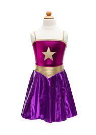 Tenue complète de super héroïne comprenant une robe, une cape et une coiffe.