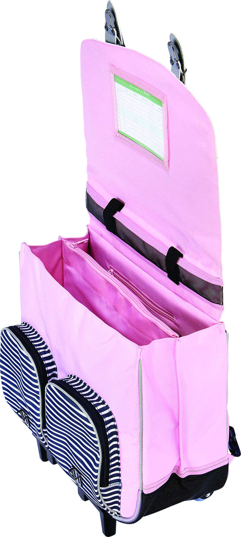 – Housse cache-roulettes pour ne pas se tâcher lorsque le cartable est porté sur le dos