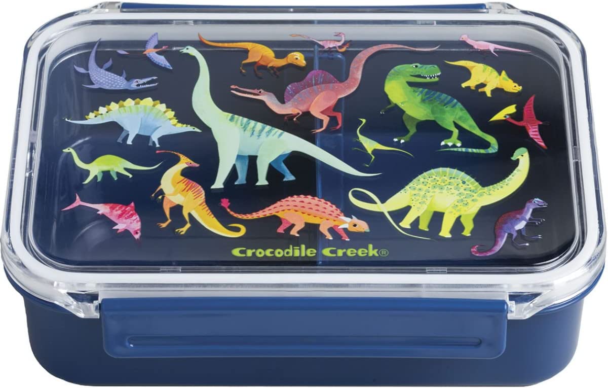 Cette très jolie boite à goûter sur le thème des dinosaures de la marque américaine Crocodile Creek convient parfaitement pour tous les enfants de 3 à 8 ans ! Elle est Idéale pour l’école maternelle et les sorties en famille. Cette boîte à gouter comporte un séparateur amovible et coulissant pour un déjeuner varié. Le couvercle transparent comporte un bord en caoutchouc