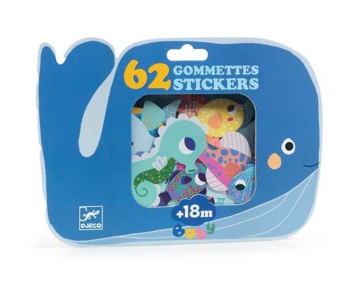 Mes premières gommettes ! Découvrez, dans une jolie boîte transparente, 62 gommettes sur le thème des animaux de la mer. Une première gommette adaptée au tout petit : un papier très épais et un découpage pour permettre un effeuillage en toute autonomie.