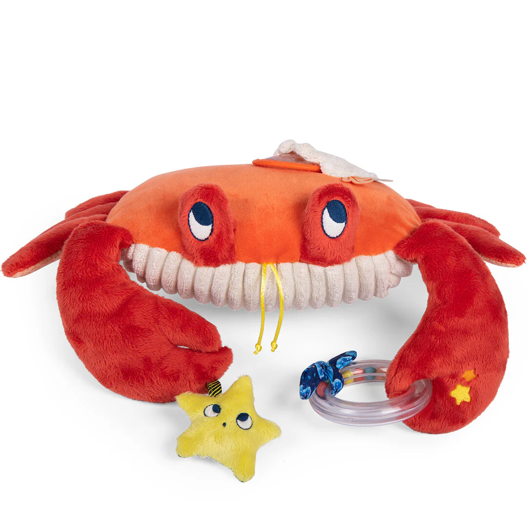 Découvrez le grand crabe d’activités de la collection Les aventures de Paulie de Moulin Roty, une peluche d’activités qui viendra stimuler et éveiller bébé dès sa naissance.