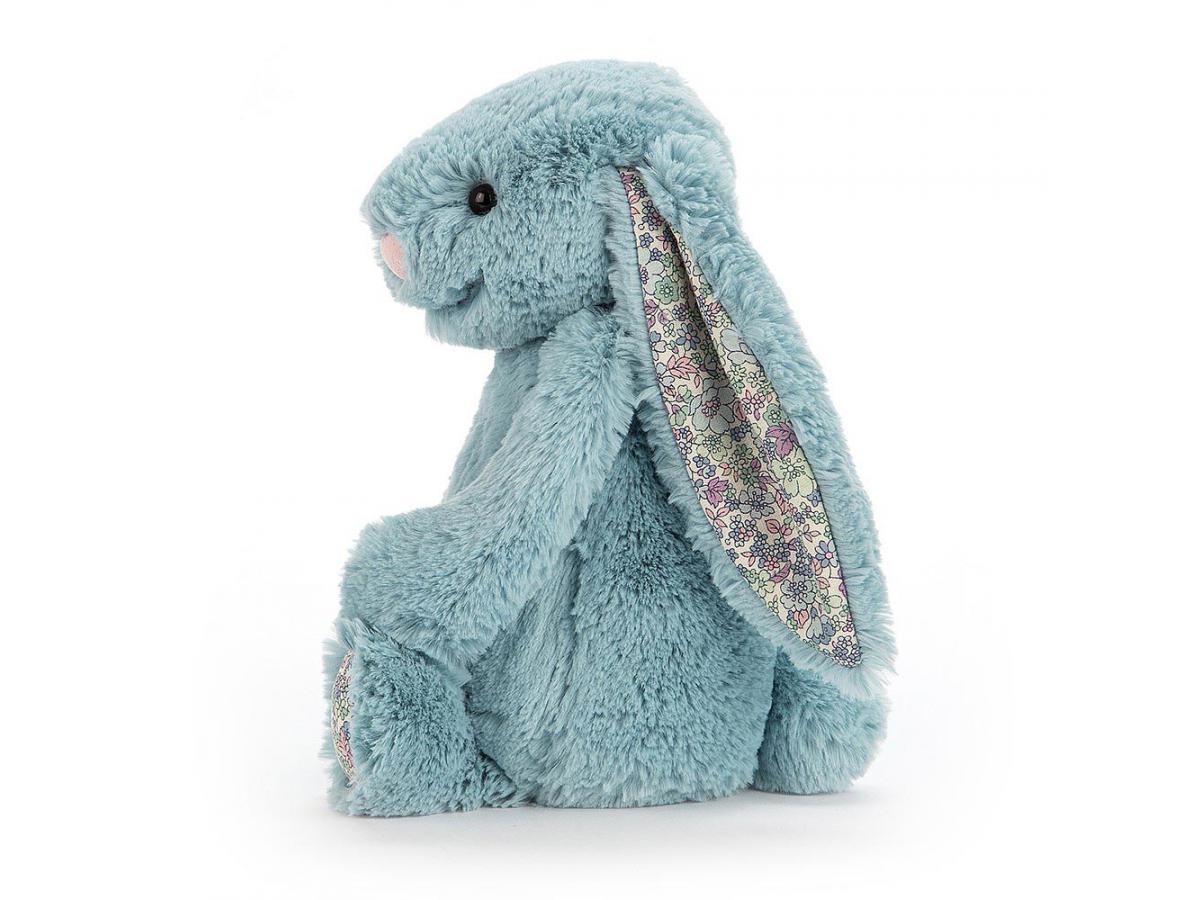 La peluche lapin Blossom Aqua est une belle peluche bleu issus de la célèbre marque anglaise Jellycat.