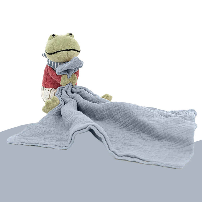 Voici un adorable doudou grenouille très réconfortant. Très élégant, il est habillé d’un haut rouge, d’un pantalon blanc et d’une cravate. Il tient un grand doudou mouchoir dans ses pattes pour offrir encore plus de douceur.