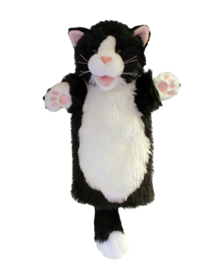 - Cette marionnette à main » Chat noir et blanc » facile à manipuler, peut convenir pour les petits et les grands ! Racontez plein d’histoires ou laissez l’imaginaire se construire grâce à cette marionnette à gaine !