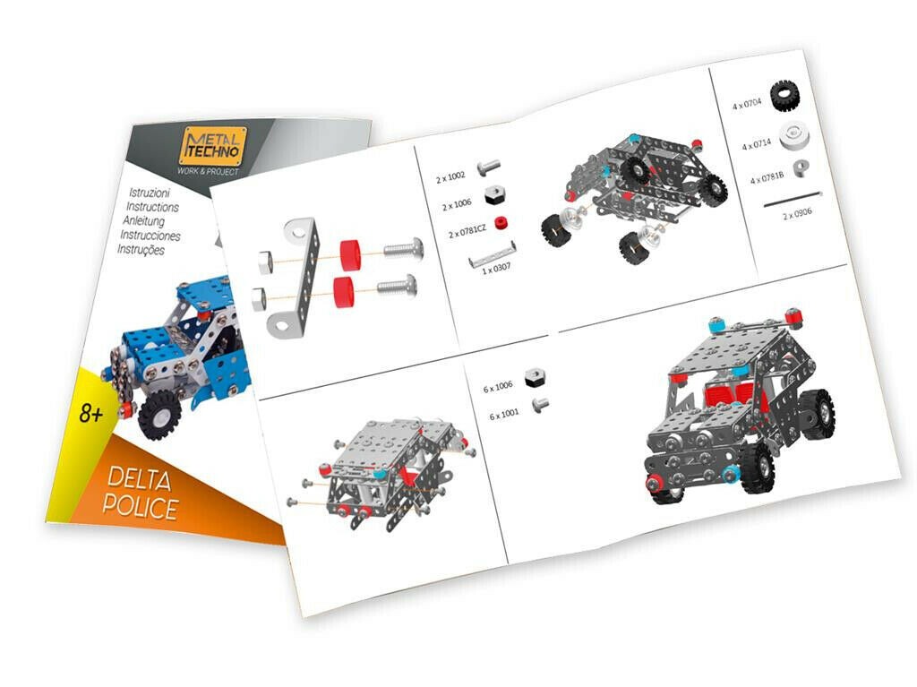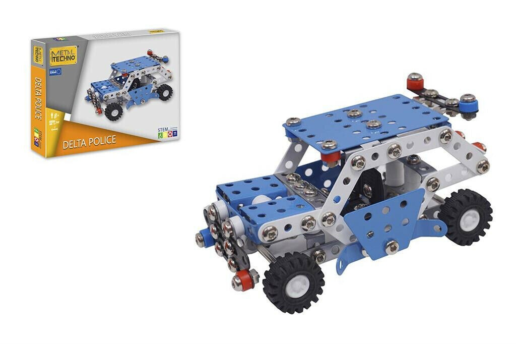 Avec le set de construction Metal Techno Delta Police, les enfants construisent une voiture de police en métal détaillée étape par étape. Les 269 pièces métalliques sont assemblées à l’aide d’écrous et de boulons, offrant une expérience de construction réaliste et un modèle final solide et durable.