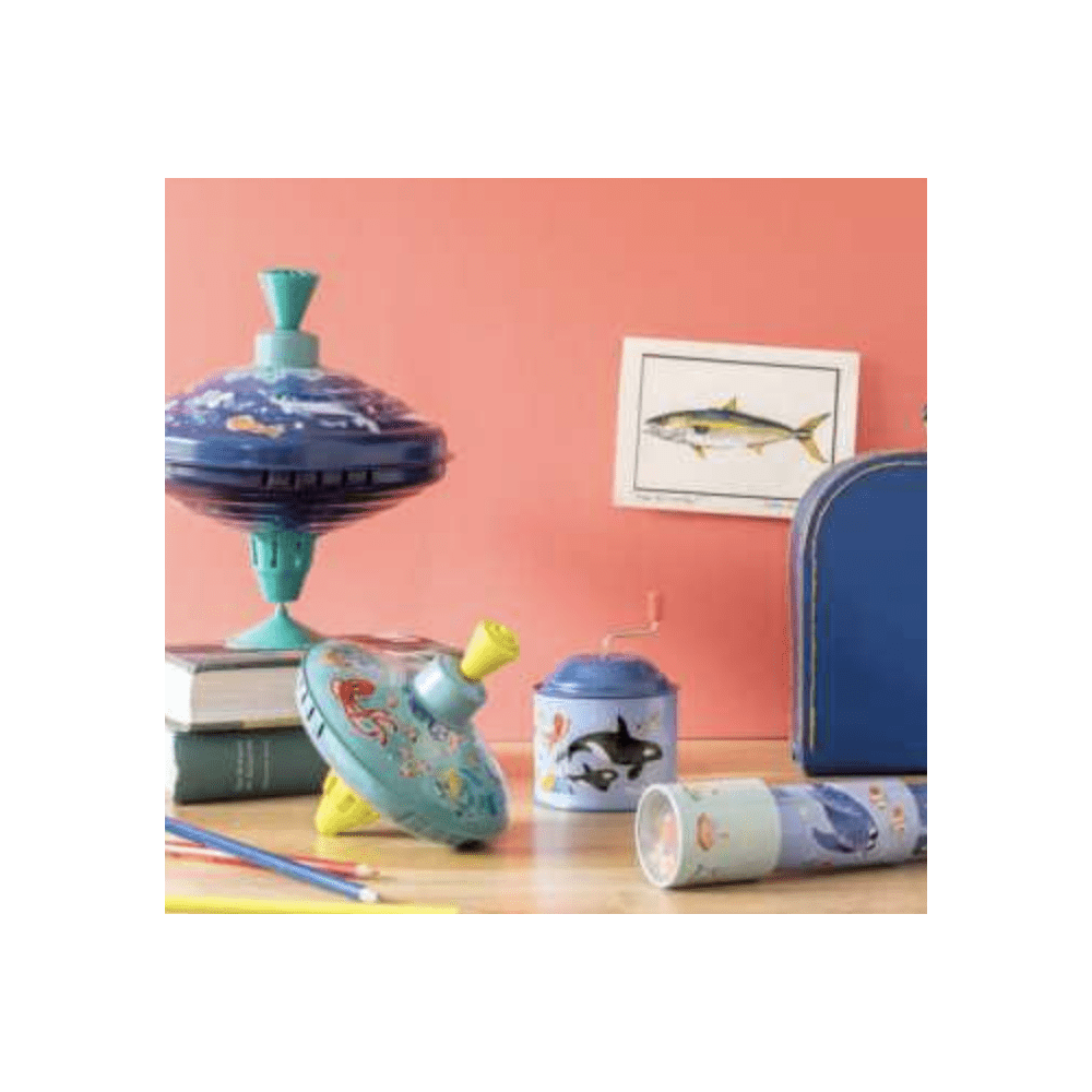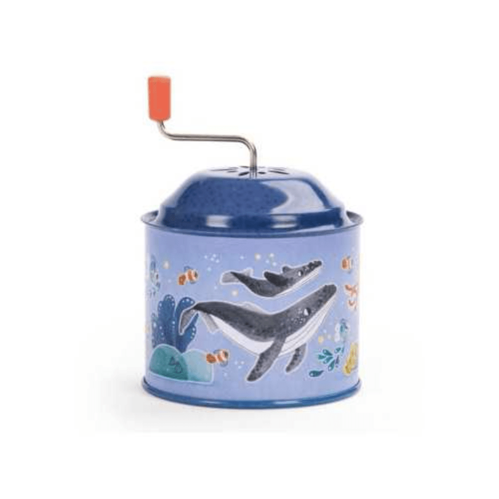 Tournez, tournez, et laissez la magie opérer! Ce moulin à musique en métal, magnifiquement illustré sur le thème de la mer avec Paulie le poulpe et ses amis de l’océan, est un clin d’œil nostalgique aux jouets de notre enfance.