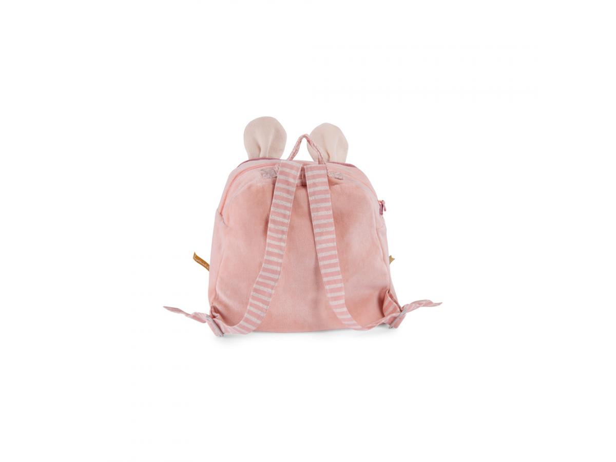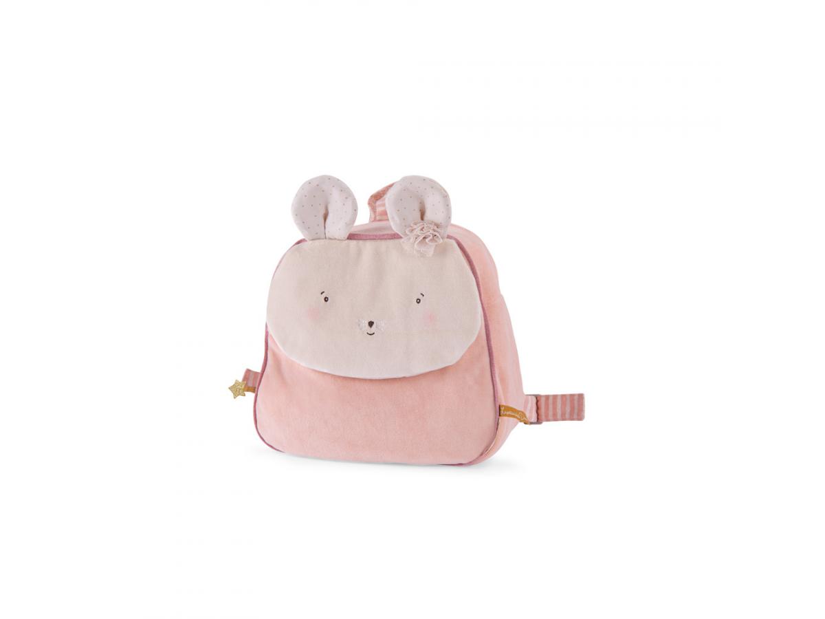 écouvrez le sac à dos souris de la collection la petite école de danse de Moulin Roty, un sac en tissu tout doux qui accompagnera votre bébé en balade, chez la nounou ou à la crèche.