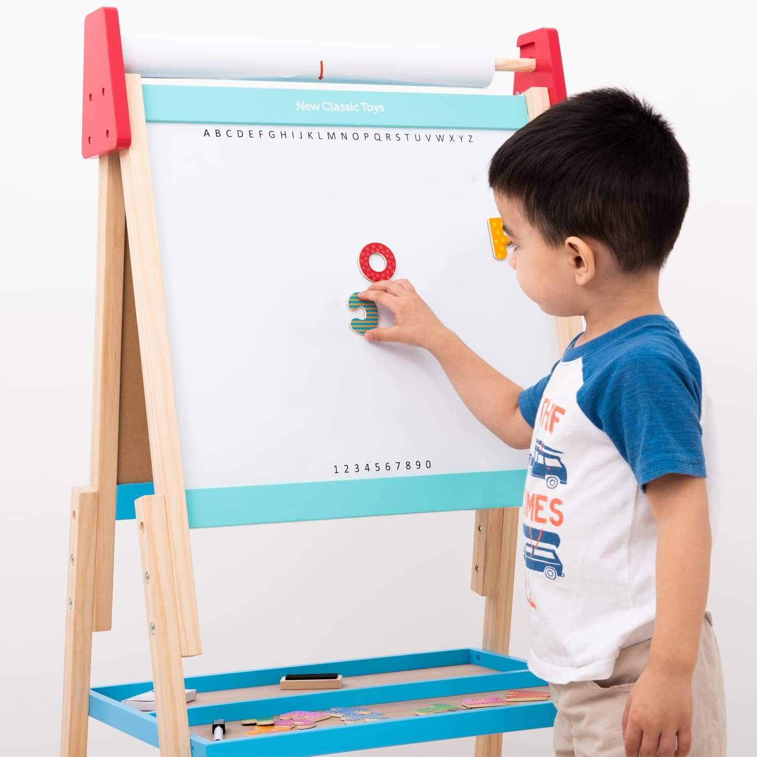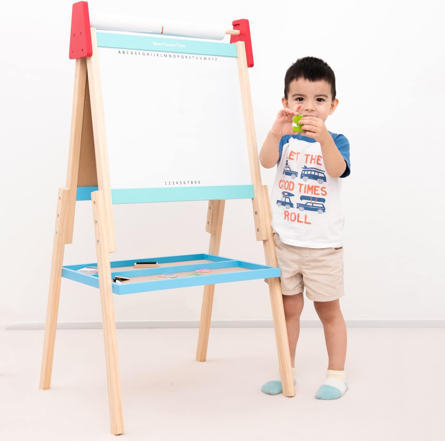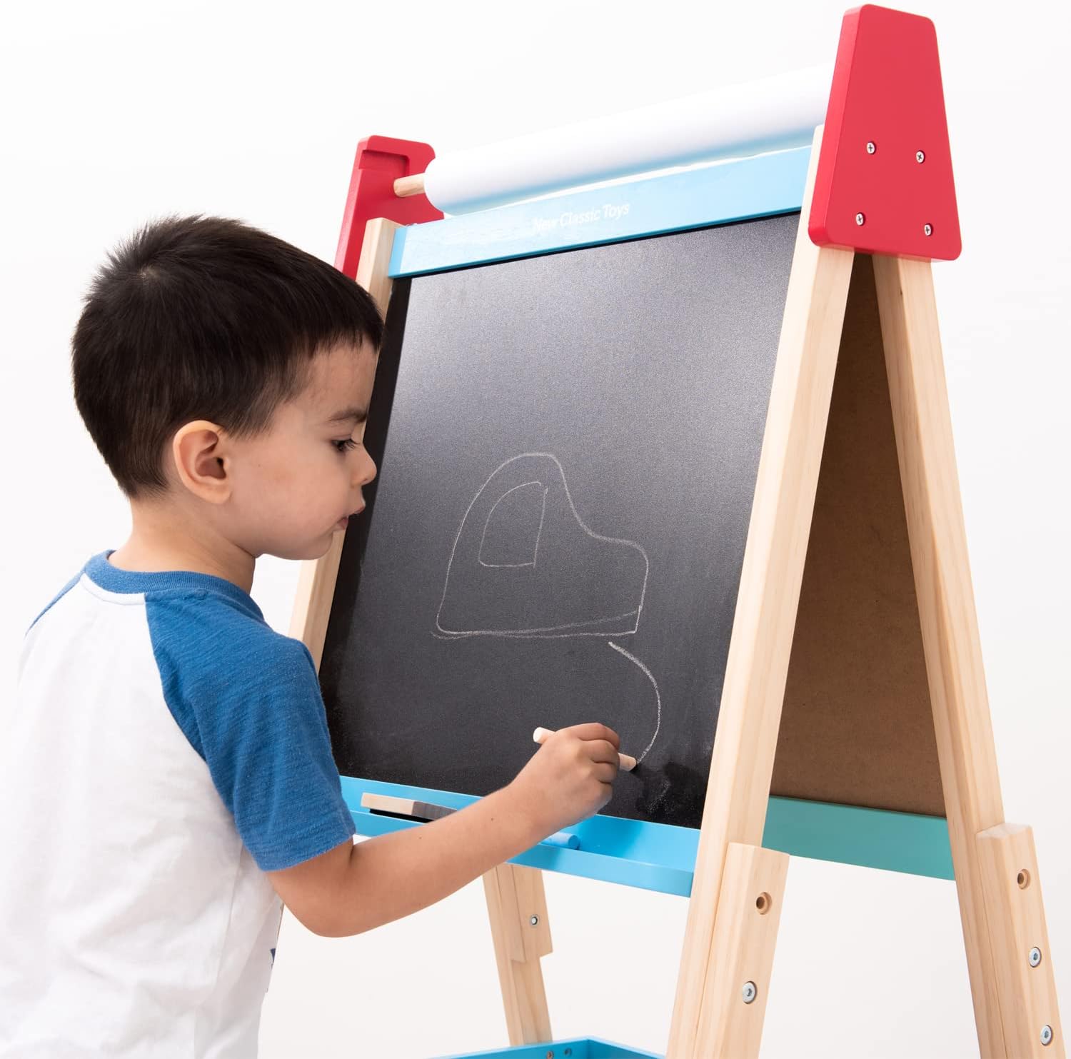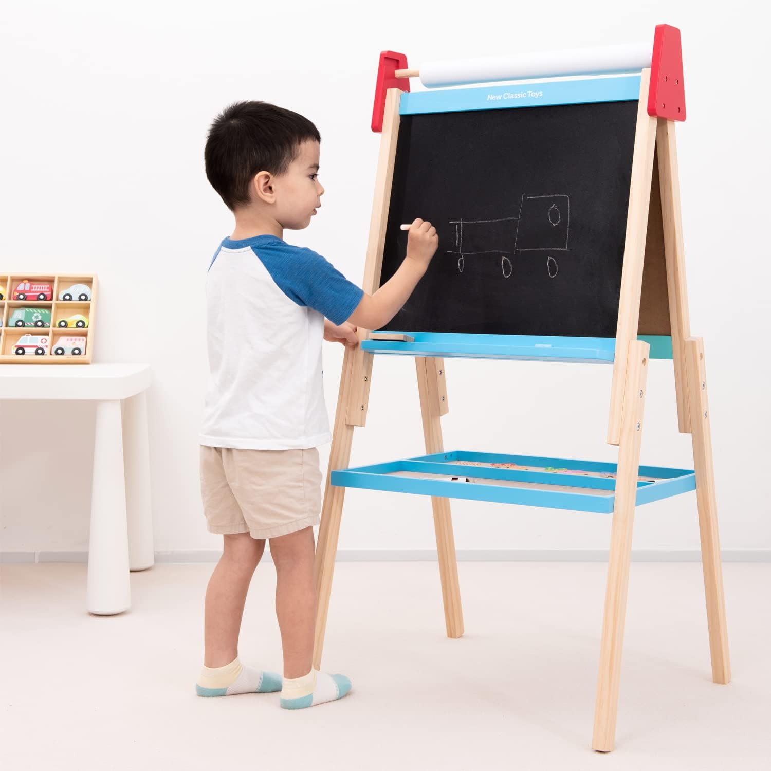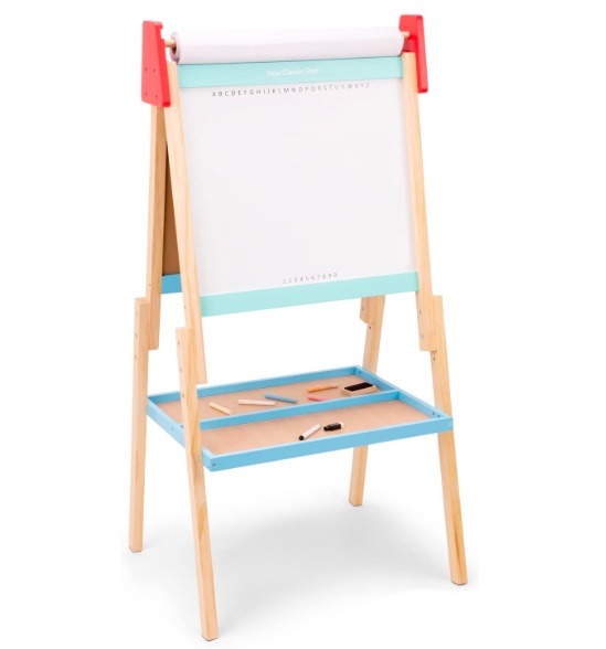 Les premiers dessins et les premiers mots … quel bonheur de pouvoir les faire en grand, sur un tableau chevalet en bois celui de l’école ! Ce joli tableau en bois, aux couleurs tendres, permettra à votre enfant d’exprimer sa créativité sur deux surfaces, à sa hauteur.