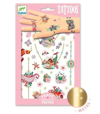 Magnifiques tatouages « les bijoux de Fiona » de Djeco, de jolis tatoos avec effets métallisés testés dermatologiquement pour les filles à partir de 3 ans. Des bijoux en tatoo, des accessoires de mode que toutes les jeunes filles adorent.