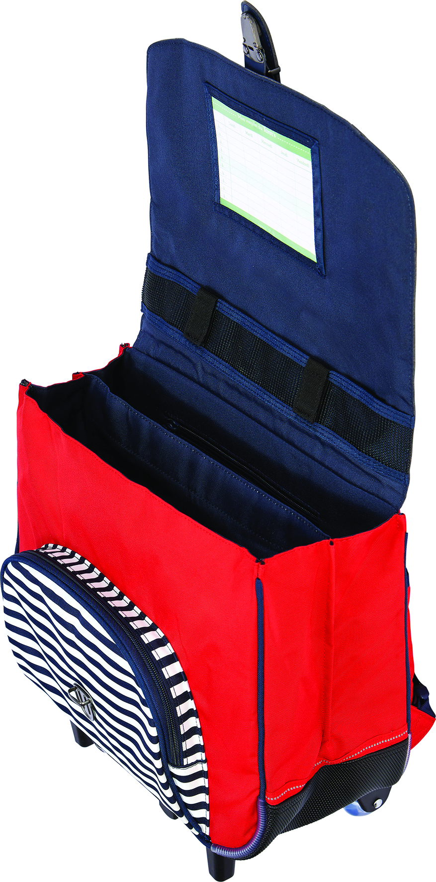 – Housse cache-roulettes pour ne pas se tâcher lorsque le cartable est porté sur le dosCe cartable assurera confort et sécurité à votre enfant grâce à ces éléments :